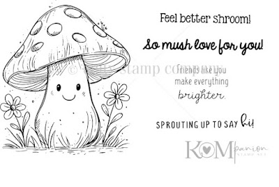 - Stamped the mushroom and sentiment with Black Amalgam ink and colored with Copic markers